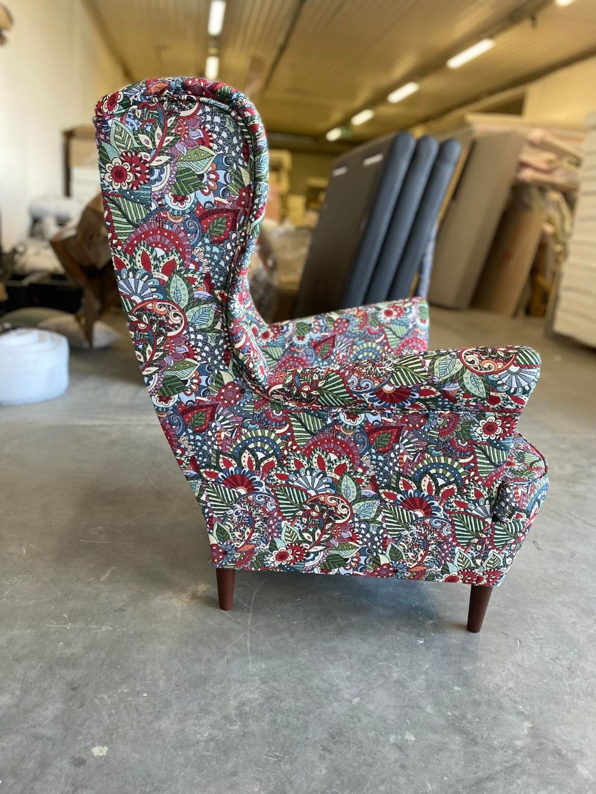 FOTEL USZAK Z PODNÓŻKIEM - TKANINA ŻAKARDOWA wzór tkany nie drukowany Jednym z najbardziej pożądanych modeli fotela jest właśnie uszak. Dzięki swojej charakterystycznej budowie i odpowiednim parametrom, nasz fotel zapewni Ci wspaniały wypoczynek. Dodatkowym atutem jest podnóżek, który nie zabierze Ci wiele miejsca, a posłuży również jako awaryjne siedzisko. Meble wspierają się na solidnie wykonanych drewnianych nóżkach. Wybierz, który styl bardziej pasuje do Twojej aranżacji- nóżki gięte (unikalny kształt stylizowany na ,, ludwika "), nóżki proste- (minimalistyczny wygląd stworzony do nowoczesnych wnętrz) Nóżki dostępne w kolorach : biały, bukowy, orzech, wenge TKANINA ŻAKARDOWA charakteryzuje się bogatą kolorystyką oraz dużą wytrzymałością . Wielokolorowy wzór pozwoli Ci na szeroki wybór dodatków !WZORY NIE SĄ DRUKOWANE ALE TKANE! Fotel w wersji bujak na płozach kosztuje 100 zł więcej Szyjemy również poduszki 50x50 w cenie 89/szt ,które nie są przedmiotem tej aukcji