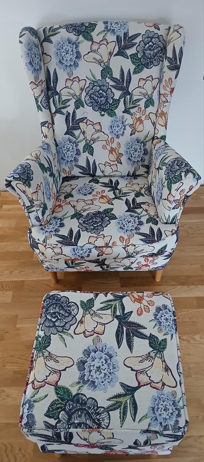 Fotel Uszak Sisi niebieski + podnóżek