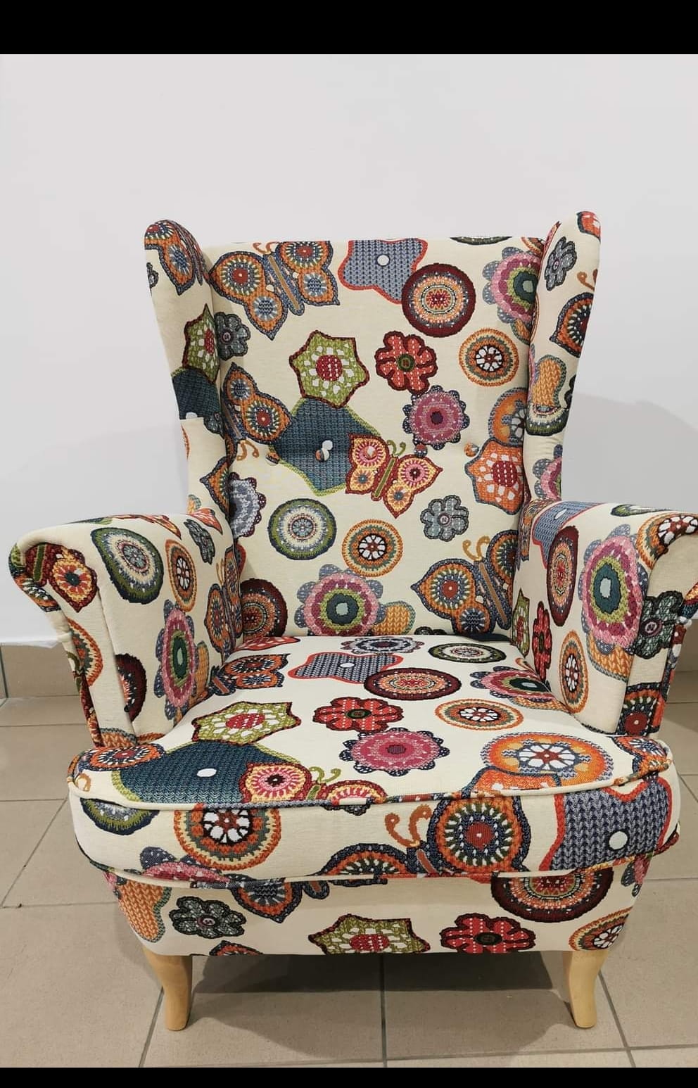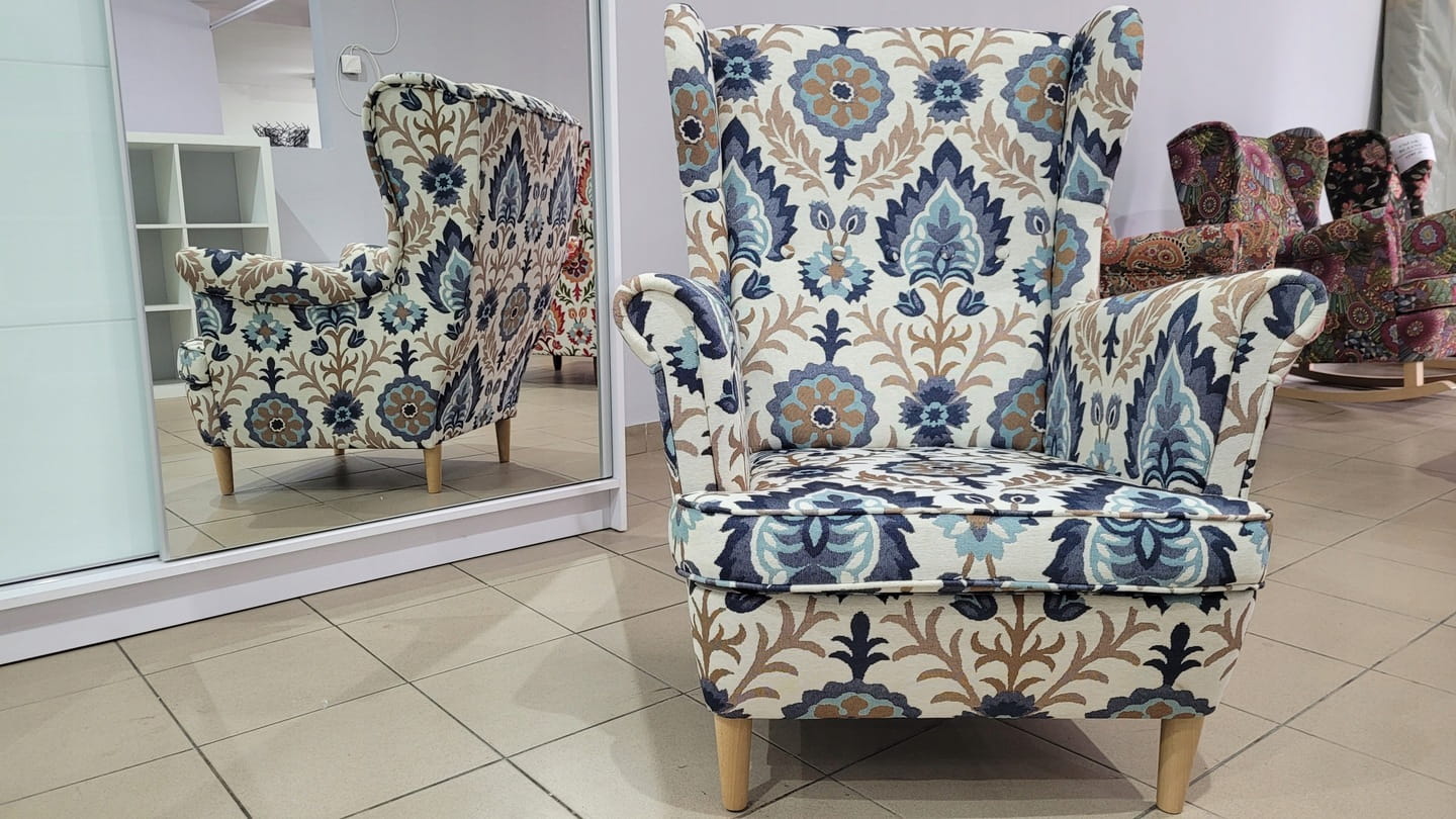 FOTEL USZAK Z PODNÓŻKIEM - TKANINA ŻAKARDOWA wzór tkany nie drukowany Jednym z najbardziej pożądanych modeli fotela jest właśnie uszak. Dzięki swojej charakterystycznej budowie i odpowiednim parametrom, nasz fotel zapewni Ci wspaniały wypoczynek. Dodatkowym atutem jest podnóżek, który nie zabierze Ci wiele miejsca, a posłuży również jako awaryjne siedzisko. Meble wspierają się na solidnie wykonanych drewnianych nóżkach. Wybierz, który styl bardziej pasuje do Twojej aranżacji- nóżki gięte (unikalny kształt stylizowany na ,, ludwika "), nóżki proste- (minimalistyczny wygląd stworzony do nowoczesnych wnętrz) Nóżki dostępne w kolorach : biały, bukowy, orzech, wenge TKANINA ŻAKARDOWA charakteryzuje się bogatą kolorystyką oraz dużą wytrzymałością . Wielokolorowy wzór pozwoli Ci na szeroki wybór dodatków !WZORY NIE SĄ DRUKOWANE ALE TKANE! Fotel w wersji bujak na płozach kosztuje 100 zł więcej Szyjemy również poduszki 50x50 w cenie 89/szt ,które nie są przedmiotem tej aukcji