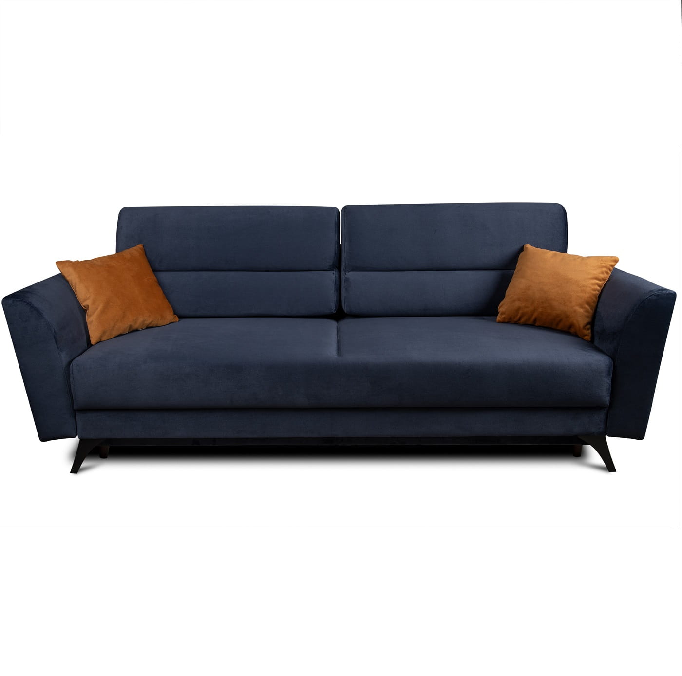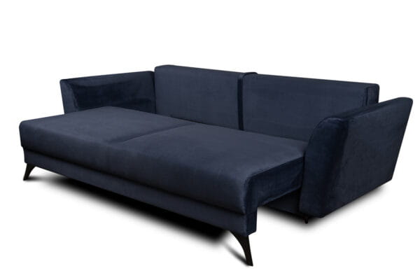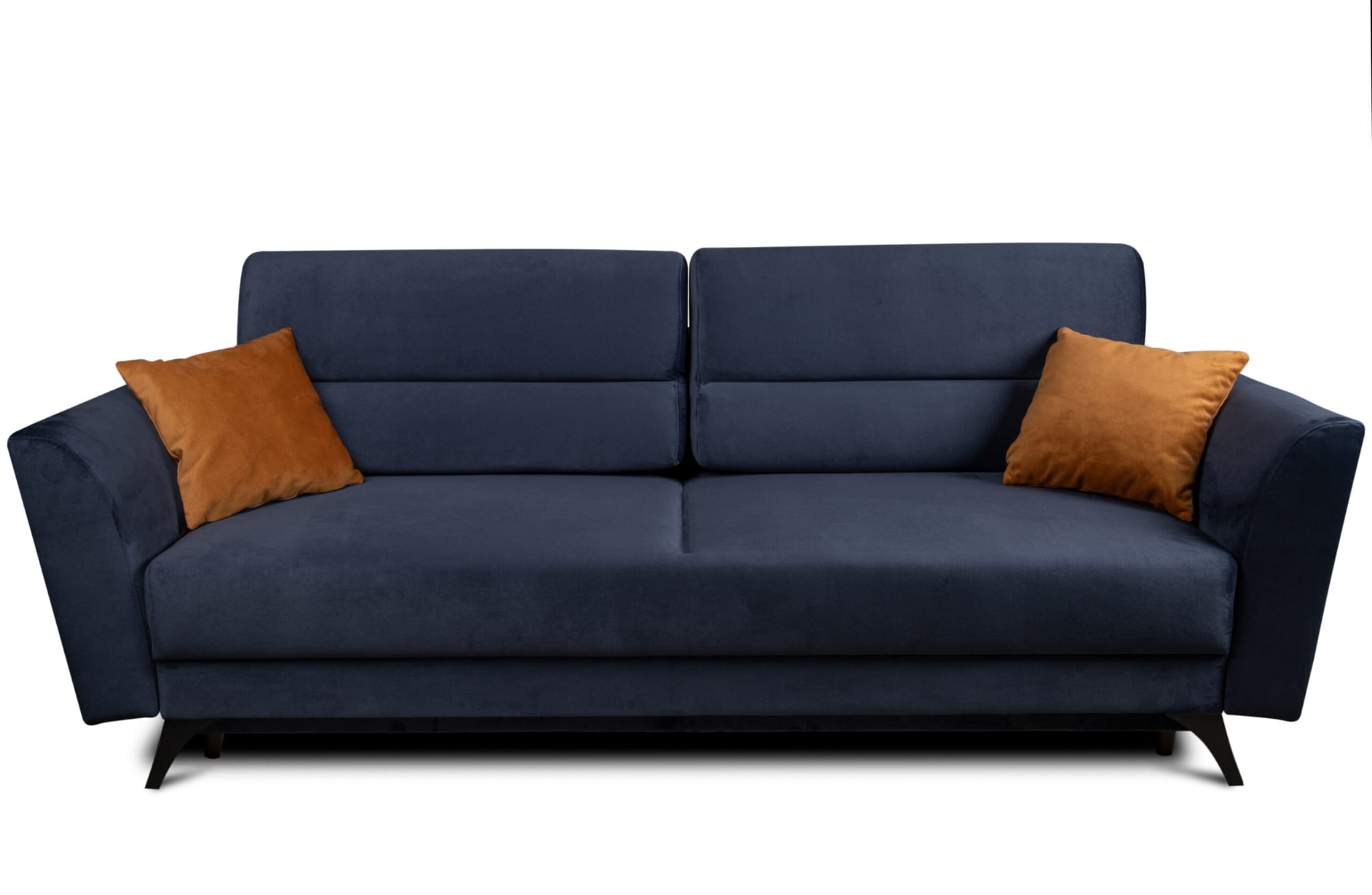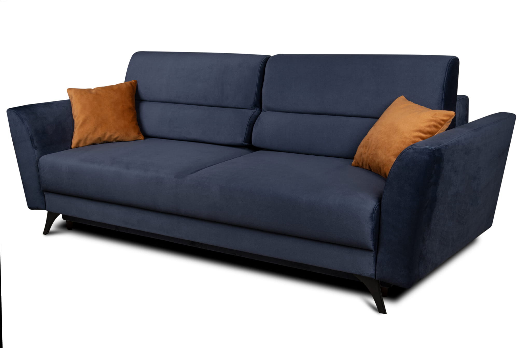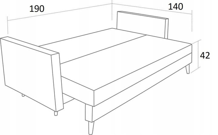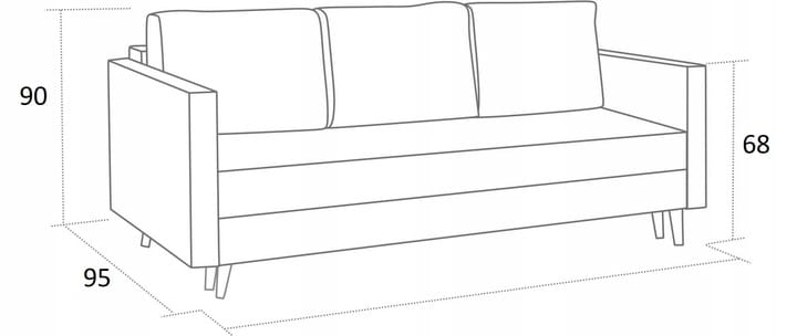 Parametry fizyczne wielkość: trzyosobowa szerokość mebla: 231 cm głębokość mebla: 95 cm wysokość mebla: 92 cm powierzchnia spania – 192 cm x 140 cm wysokość siedziska od ziemi: 44cm waga (z opakowaniem): 90 cm konstrukcja mebla: drewno, płyta meblowa, sprężyny faliste wypełnienie: pianka T30/30 strona: nie dotyczy sposób rozkładania: automat typu MOS schowek na pościel: 1 pojemnik rodzaj tkaniny: do wyboru mebel wolnostojący: tak funkcja spania: tak ~(192cm/140cm) wymaga montażu: tak (minimalnego)