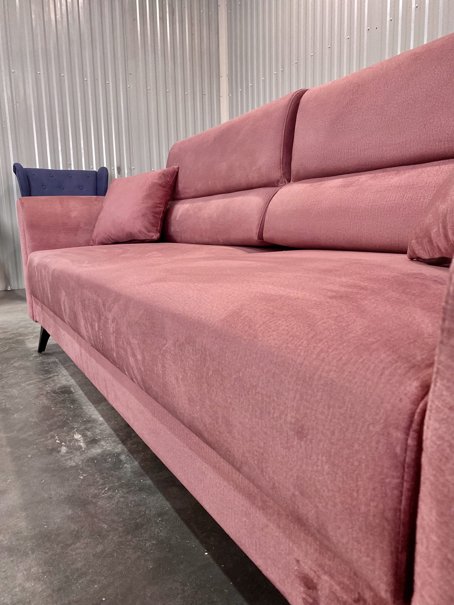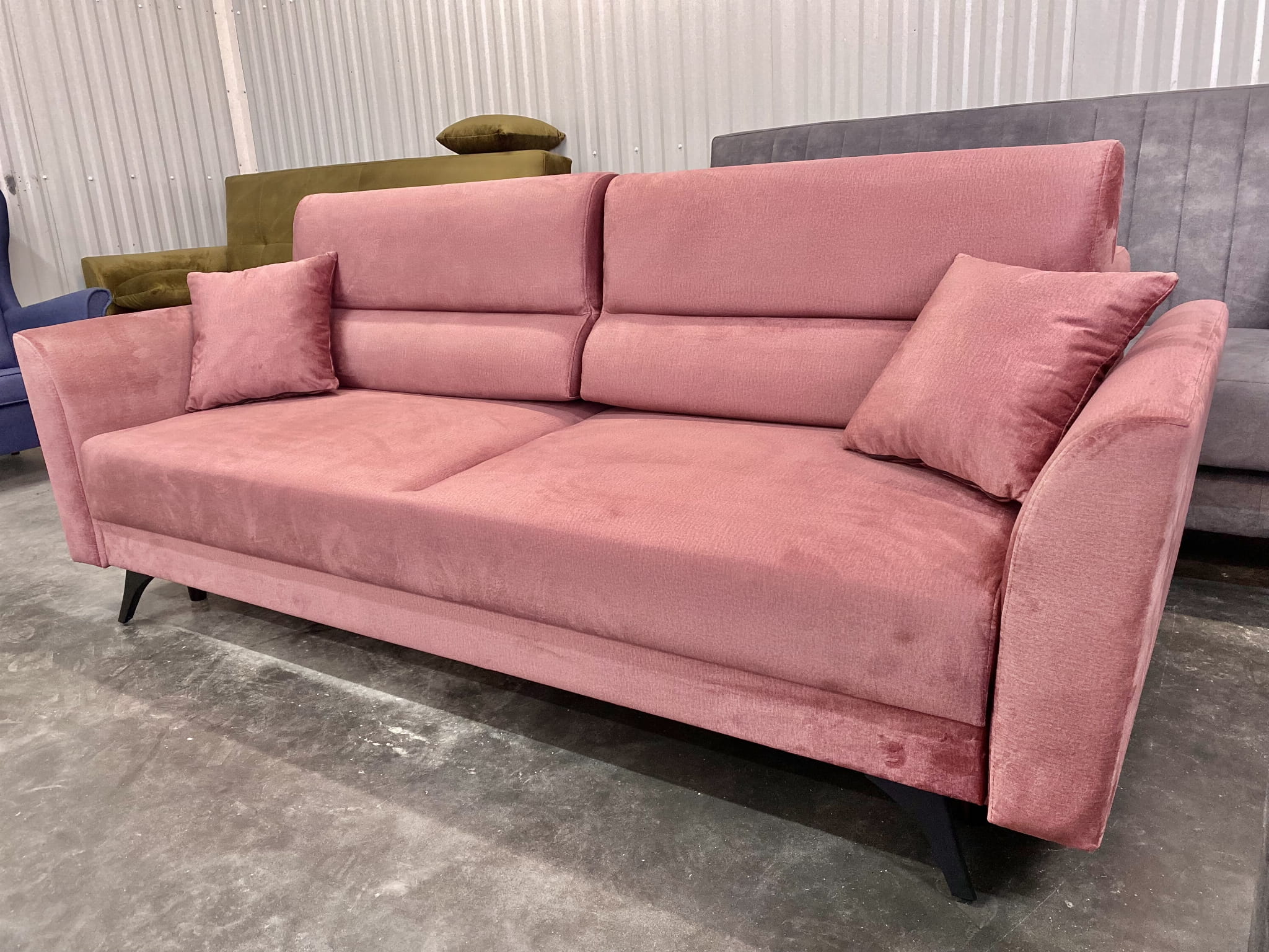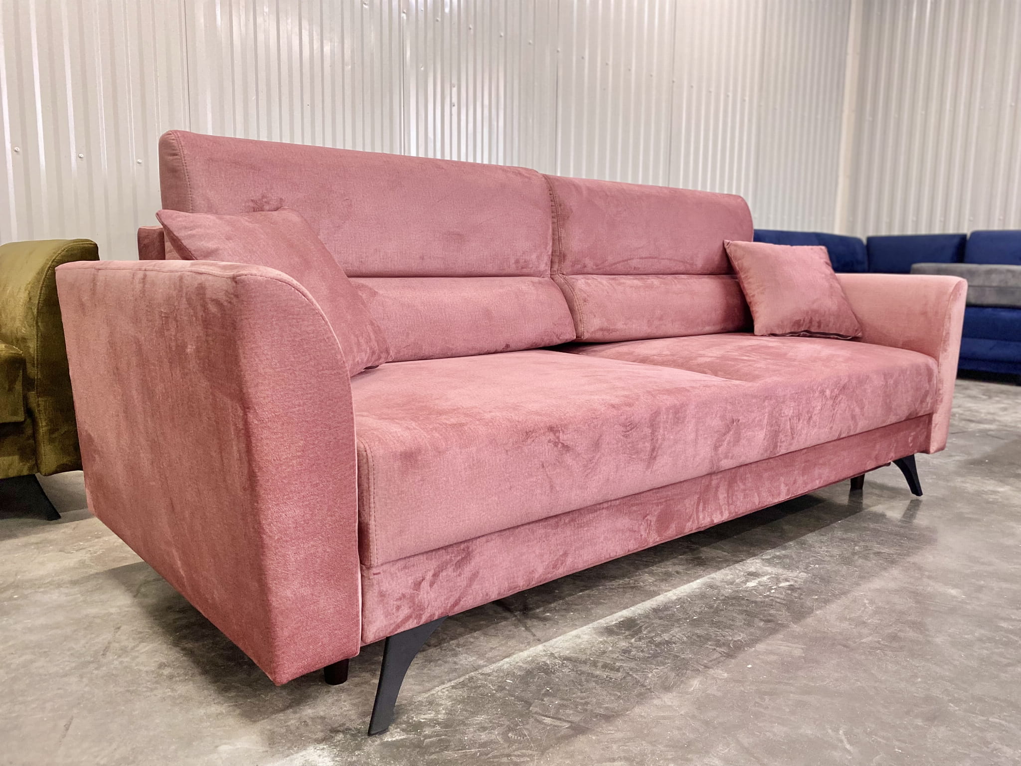Parametry fizyczne wielkość: trzyosobowa szerokość mebla: 231 cm głębokość mebla: 95 cm wysokość mebla: 92 cm powierzchnia spania – 192 cm x 140 cm wysokość siedziska od ziemi: 44cm waga (z opakowaniem): 90 cm konstrukcja mebla: drewno, płyta meblowa, sprężyny faliste wypełnienie: pianka T30/30 strona: nie dotyczy sposób rozkładania: automat typu MOS schowek na pościel: 1 pojemnik rodzaj tkaniny: do wyboru mebel wolnostojący: tak funkcja spania: tak ~(192cm/140cm) wymaga montażu: tak (minimalnego)